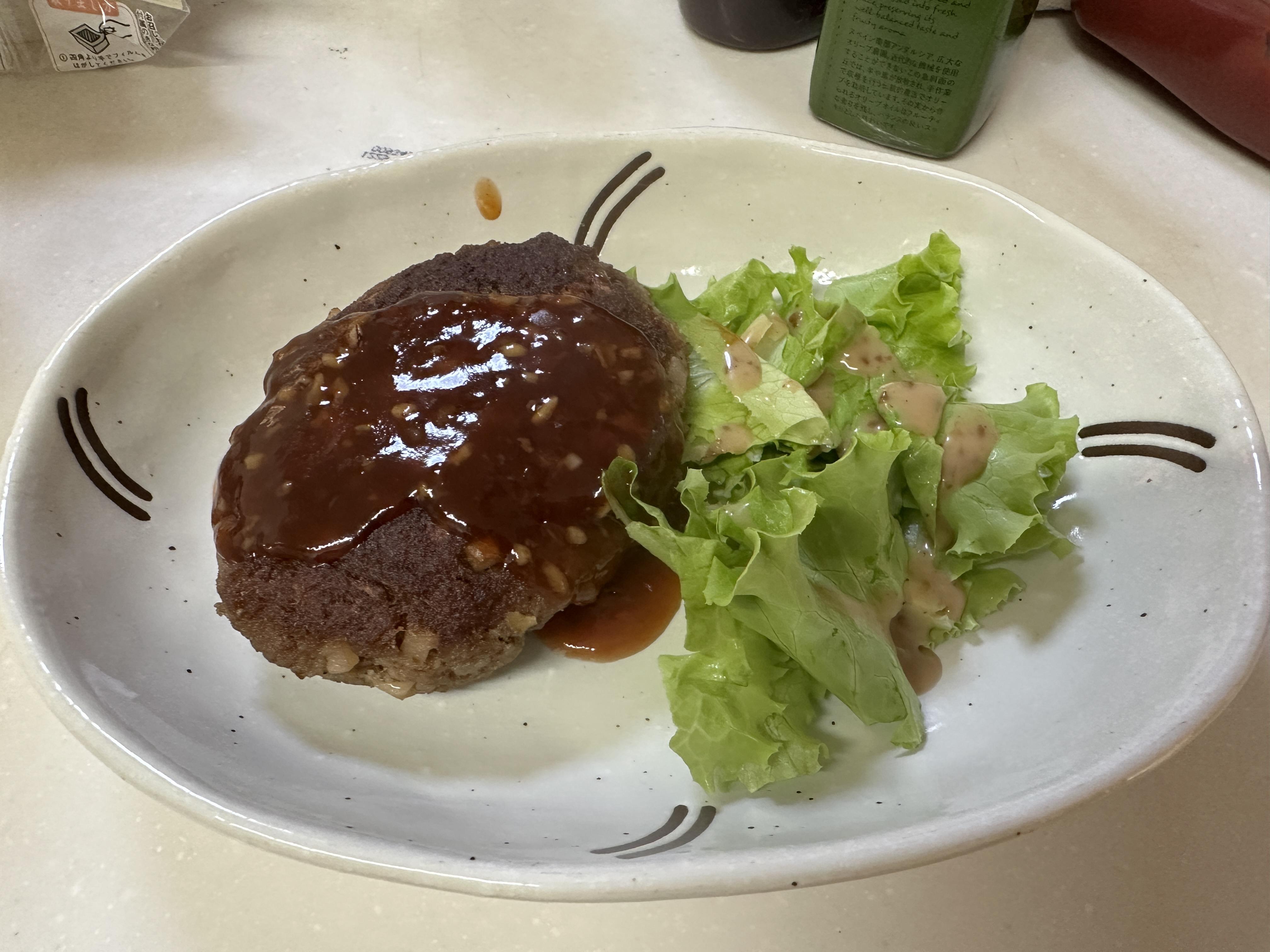 ③ 良く焼けたら、火を止め焼きあがったハンバーグを皿に移す。